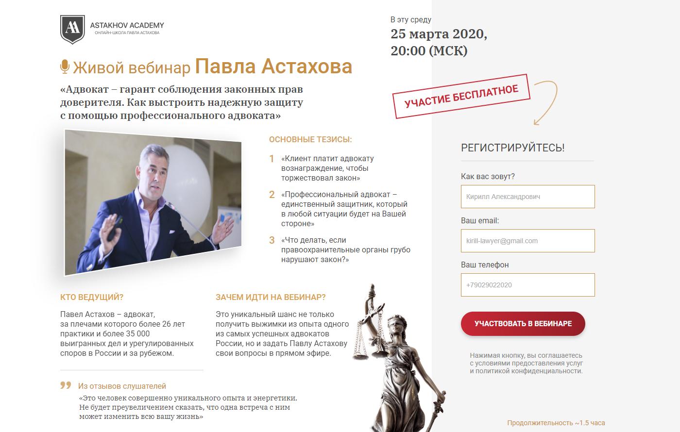 Пример одноэкранного лендинга с конверсией в заявку 50%.
